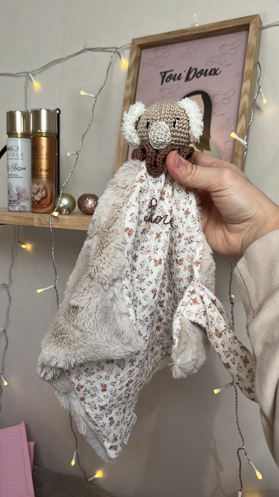 Entièrement personnalisable, ce doudou est unique, à l’image de chaque bébé. Un petit trésor confectionné avec soin pour l’accompagner jour après jour, dans ses découvertes et ses rêves les plus doux.