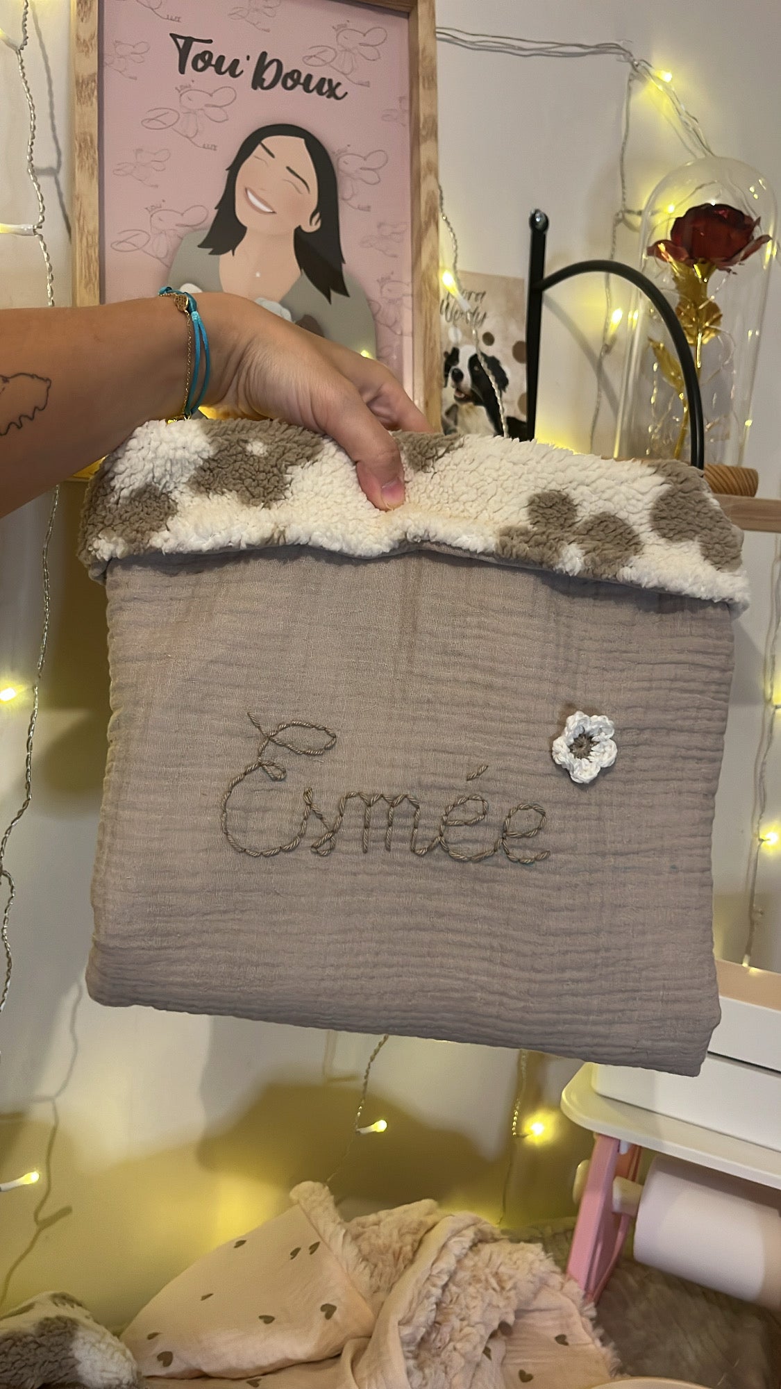 Un cadeau unique et pratique, à offrir pour une naissance, un baptême ou simplement pour se faire plaisir. Confectionné avec soin, ce plaid allie confort, style et tendresse.